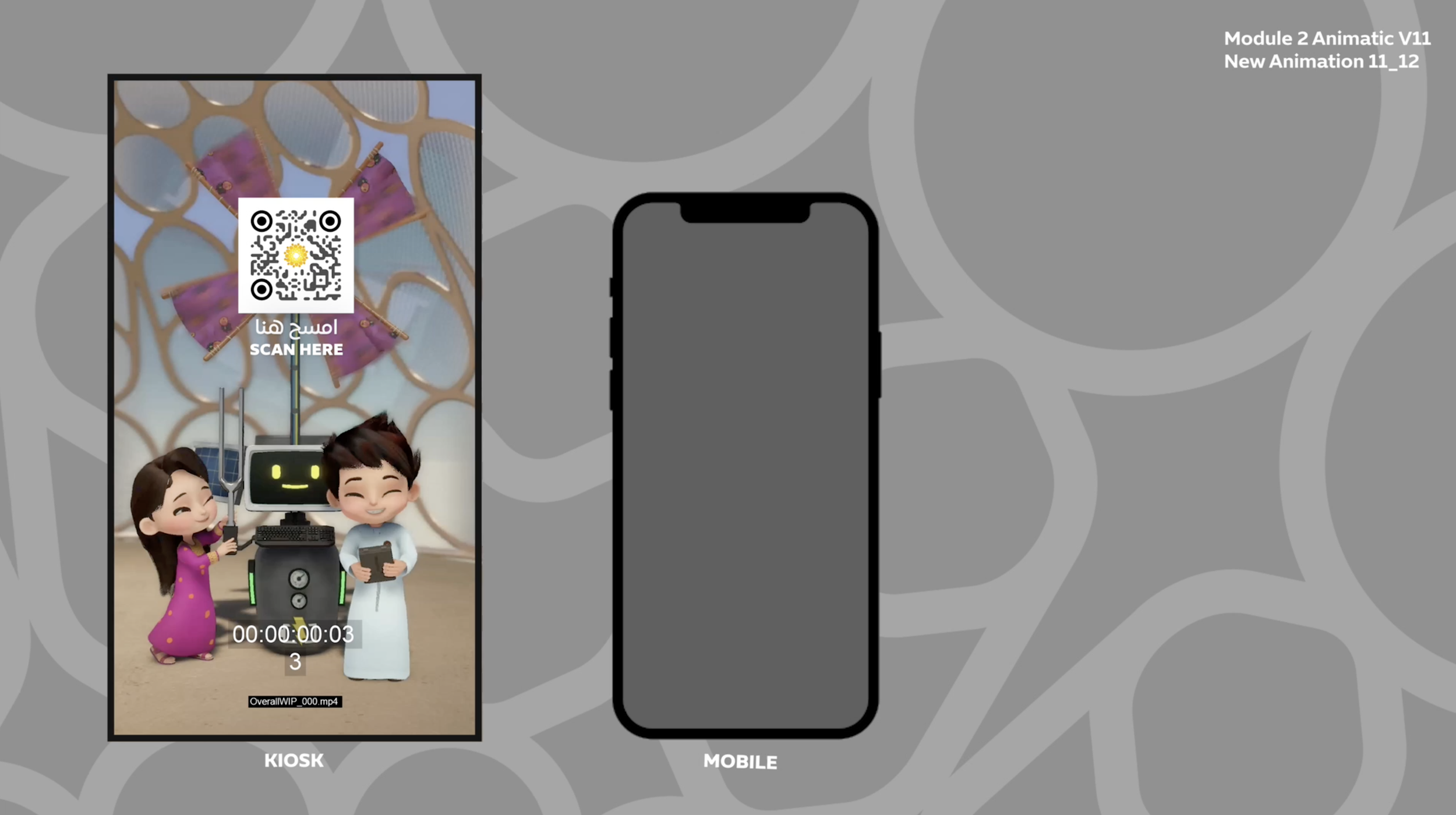 For Expo 2020 Dubai, I led the design at Hexagram for of three interactive kiosks that connected visitors’ presence to playful, responsive systems. Stereoscopic cameras created an augmented reality world inside conventional displays, tracking poses, gestures, and dance moves. Interactions were activated via QR codes, seamlessly loading experiences on visitors’ mobile devices, with each guest receiving a unique digital takeaway.